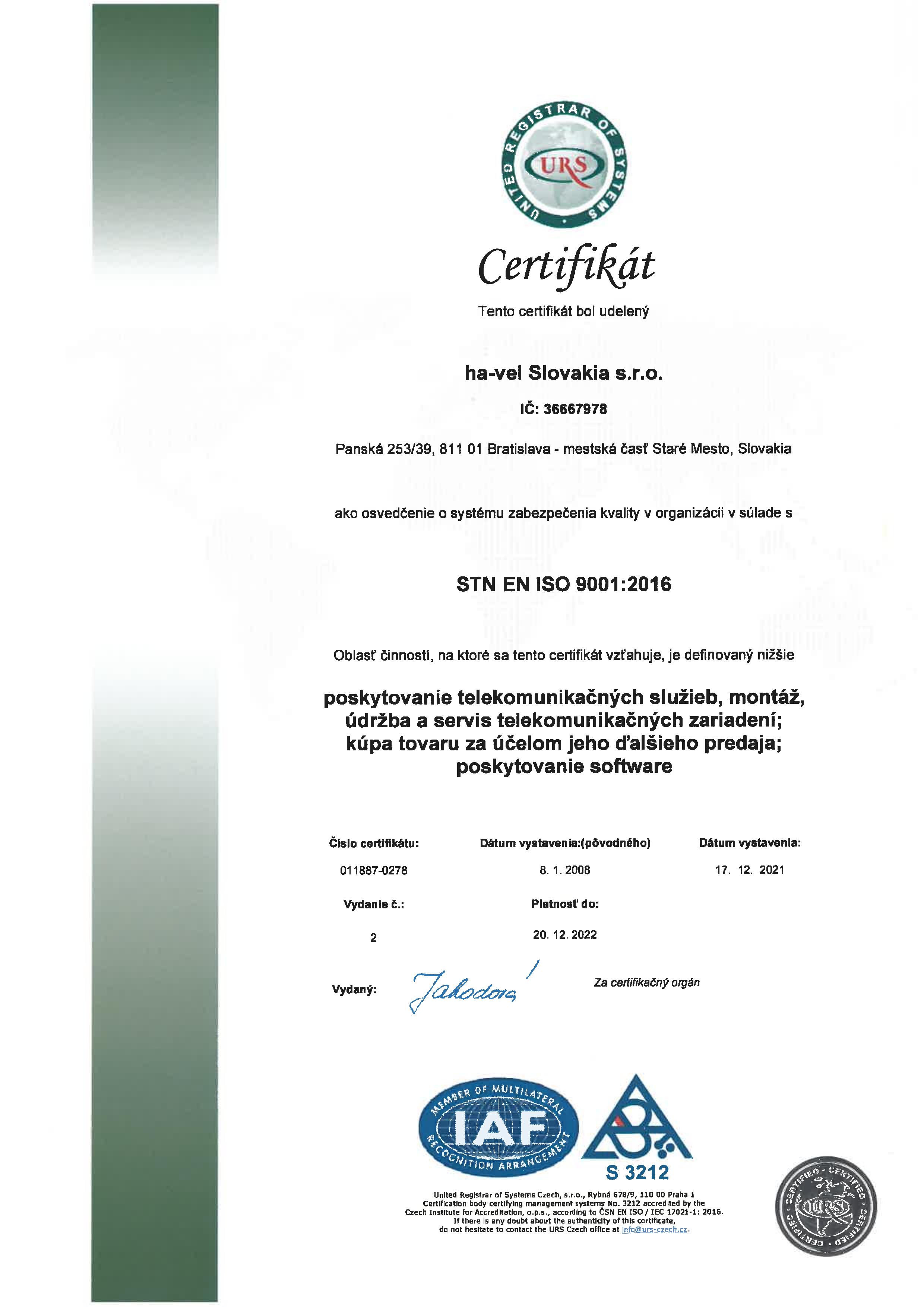 Tento certifikát je platný od 17.12.2021 do 20.12.2022