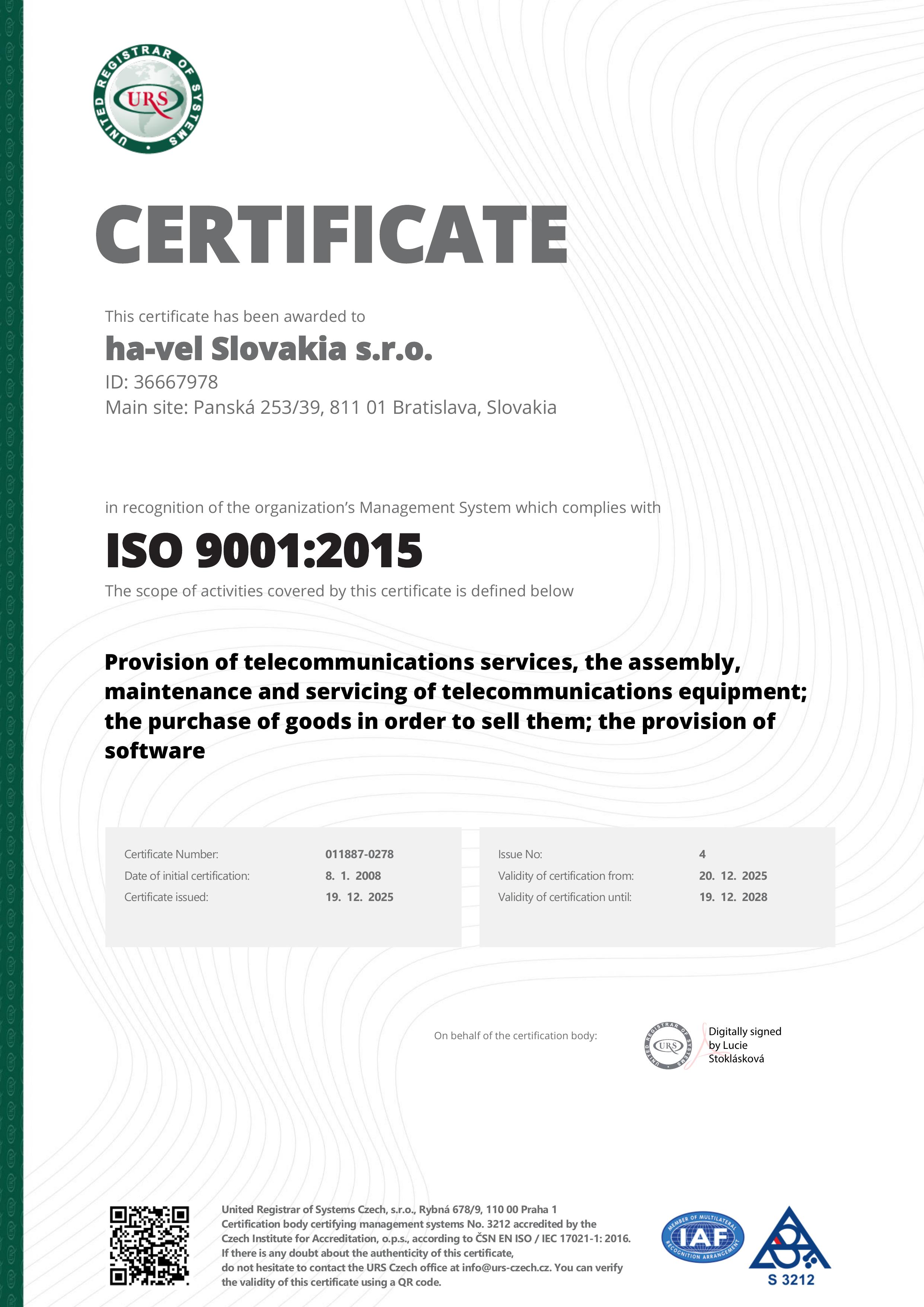 Tento certifikát je platný od 20.12.2025 do 19.12.2028